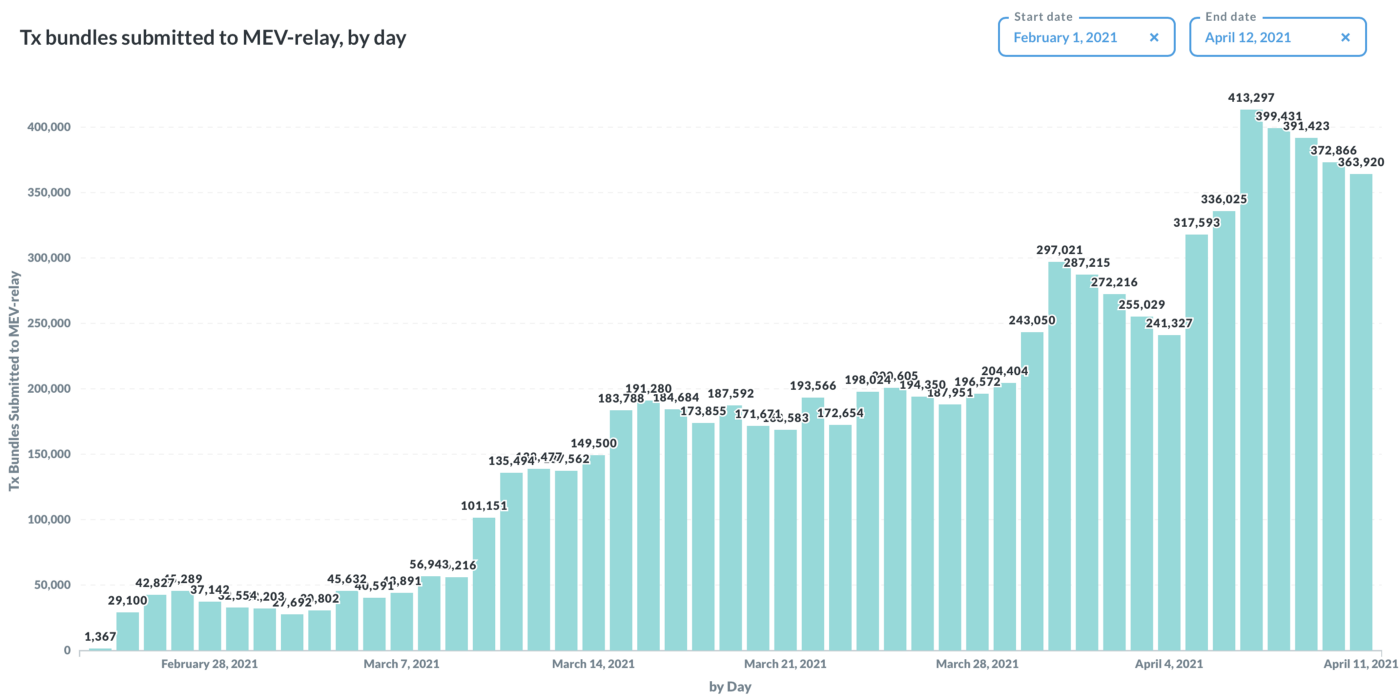 Source: Flashbots, date range: Feb-Apr, updated as of UTC 09:00, Apr 12, 2021
