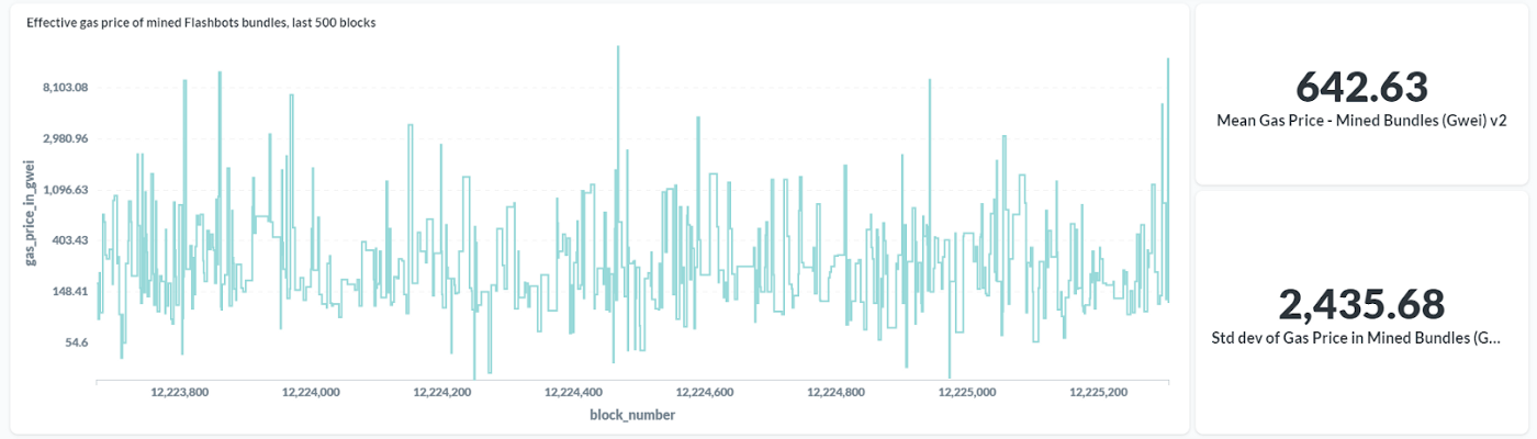Source: Flashbots, Etherscan, effective gas price calculated by taking the miner tips of flashbots bundles divided by the gas used. Data range: last 500 blocks, updated as of UTC 12:45, Apr 12, 2021