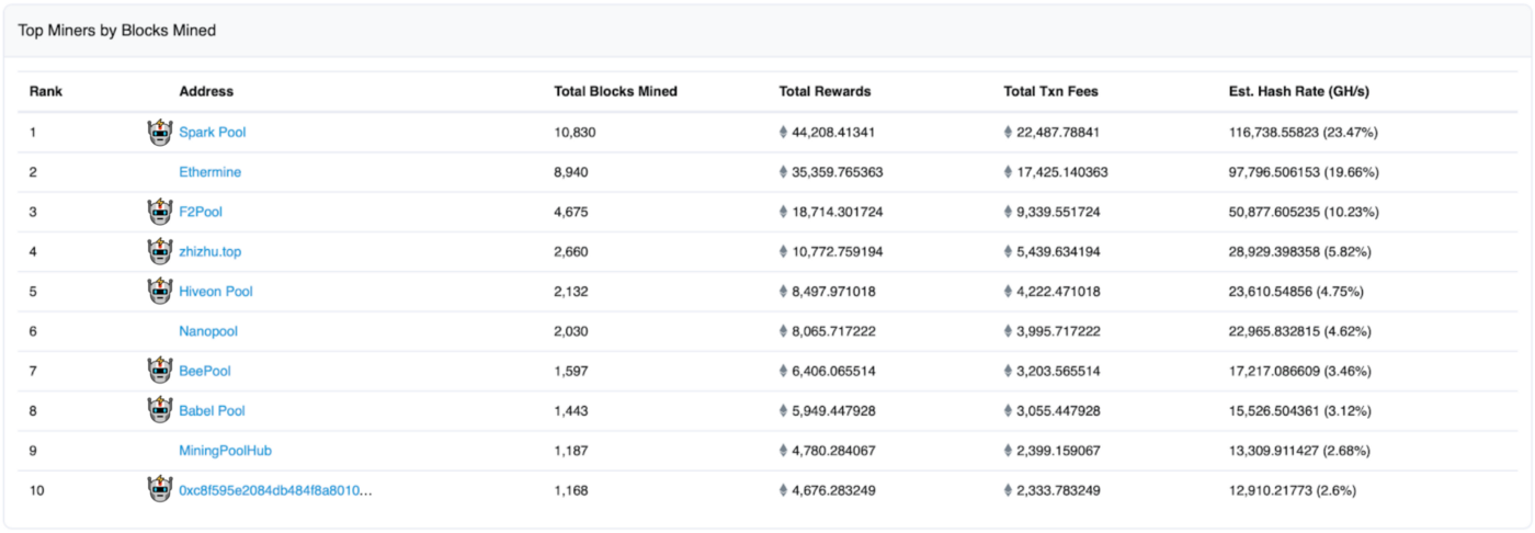 Source: Flashbots, Etherscan. Date range: hashrate ranking based on 7 day average taking from Apr 1 to Apr 7.